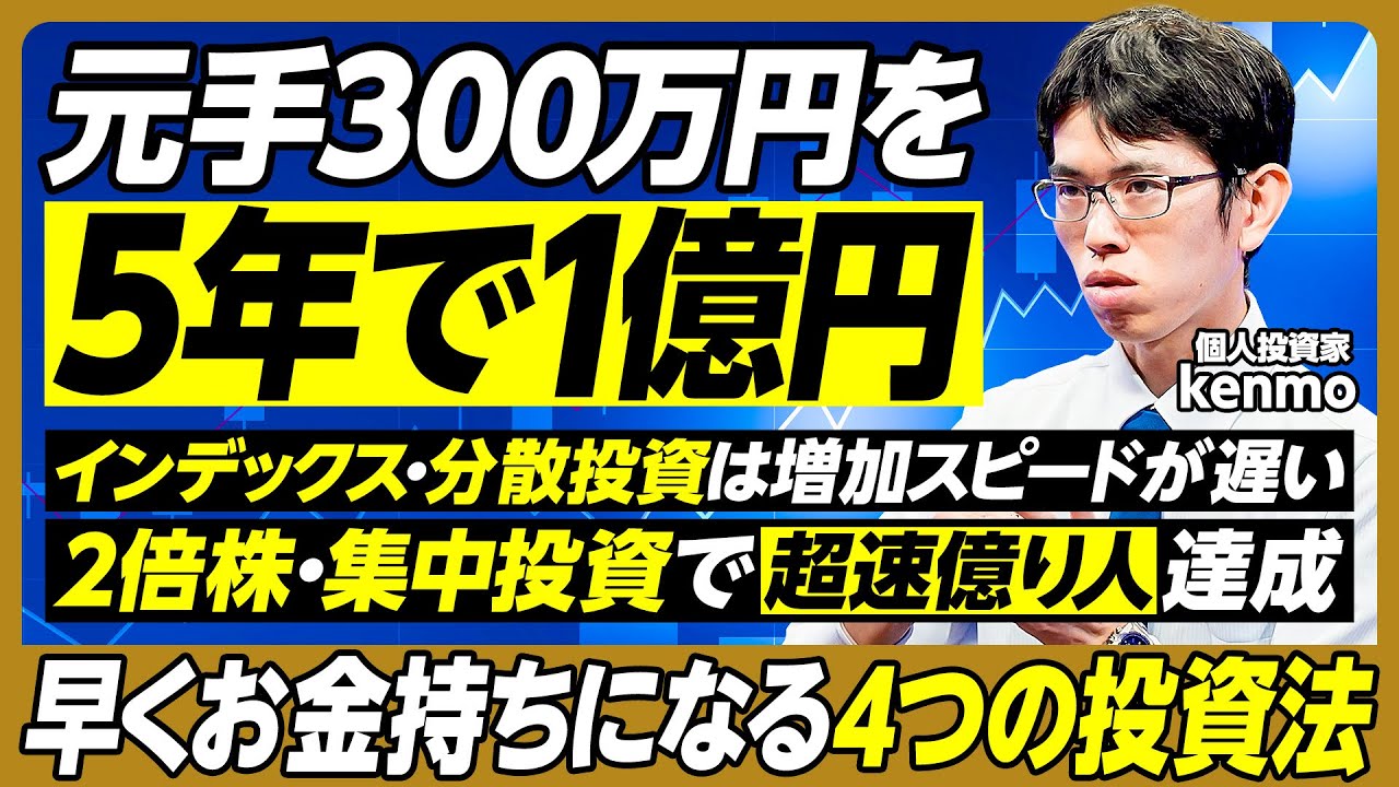 5年で1億円作る超速投資法/元手300万円/1年で2倍になる銘柄は年間約100社/資産が少ない初期は1~2銘柄に集中投資して短期間で確実に増やす/4つの投資法を実践【個人投資家・kenmo】